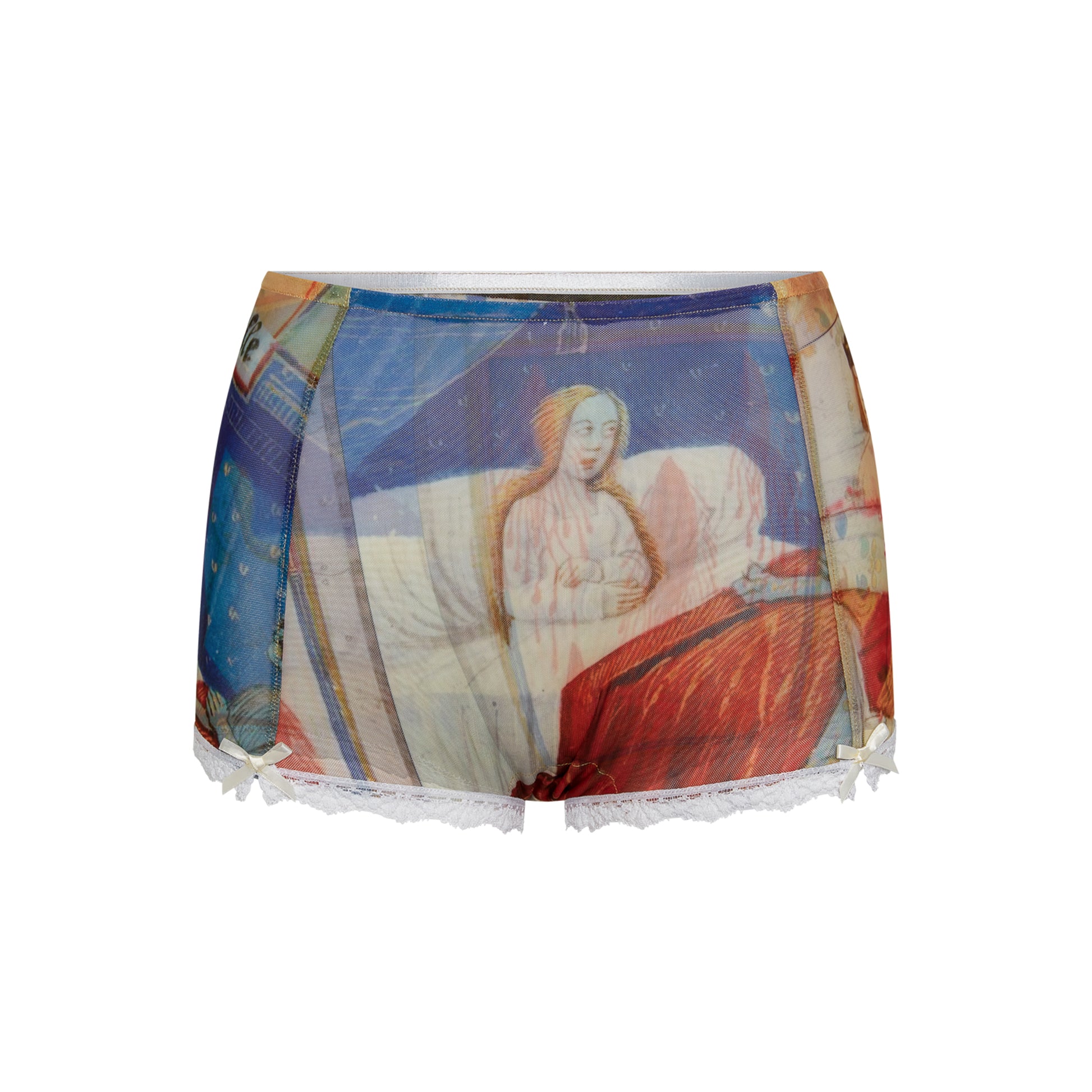Inspired by 1930s lingerie, these bloomers are perfect for wearing by themselves on a hot summer day or under your favorite dress. Made from multiple panels of our iconic Grimoire stretch mesh, these bloomers will hug you perfectly and give a natural snatched look. They are very high-waisted and offer full coverage. Finished with ivory lace and bows, these have the perfect vintage vibe and feel.